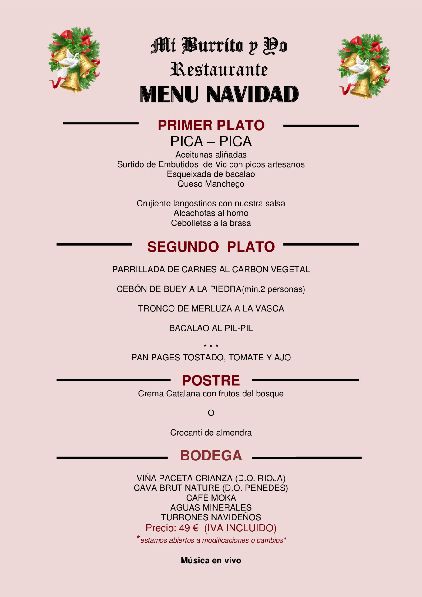 Menús especiales Navidad
