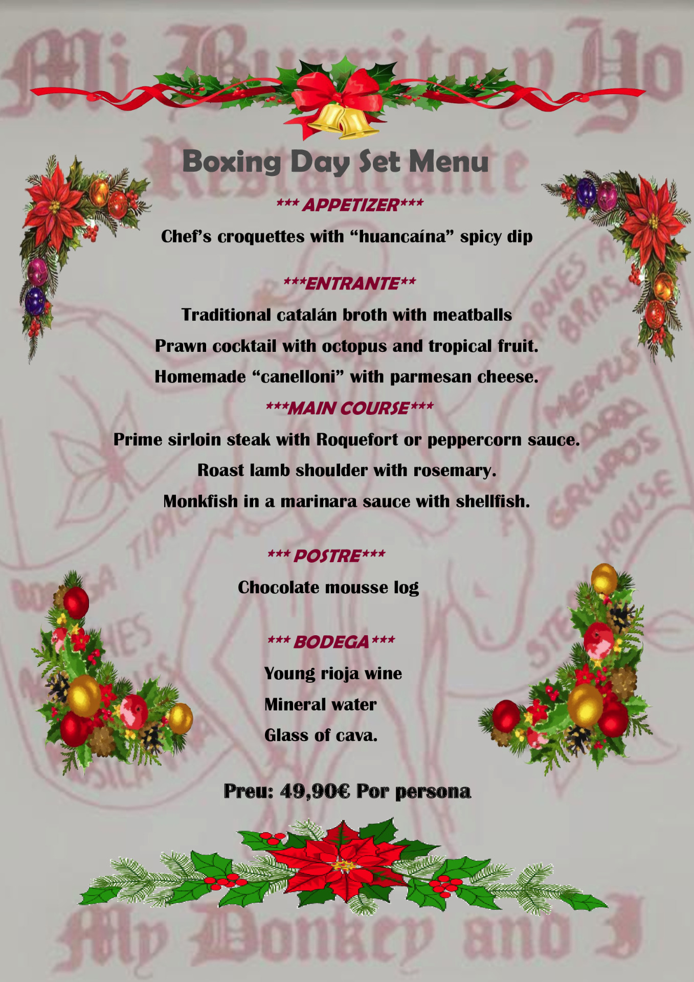 ¡¡¡Ven a celebrar con nosotros estas señaladas fechas, con tu familia, amigos o compañeros de trabajo. Os esperamos con alegría y dedicación a ustedes!!! Un fuerte abrazo del equipo Mi Burrito y Yo. ¡¡Os esperamos pronto!!