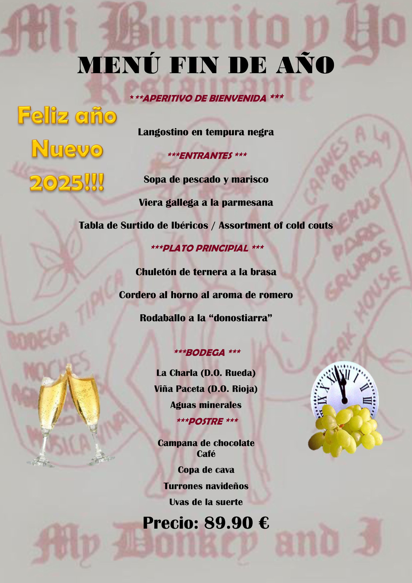 Ven a disfrutar con nosotros de la mejor despedida del año posible junto al equipo Mi Burrito y Yo. ¡¡¡Os esperamos!!! Reserven su mesa llamando al 933182742 o por Whatssap al 664250956. Una manera especial y divertida de dar entrada al nuevo 2025 junto a nosotros.